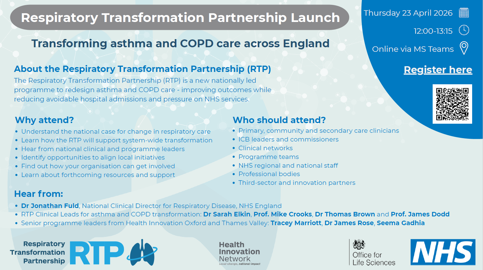 Home Events Event Calendar Respiratory Transformation Partnership Launch Webinar Respiratory Transformation Partnership Launch Webinar Date23 Apr 2026 12:00PM – 1:15PMLocationOnlineOrganiserRespiratory Transformation Partnership Book online for this event Download Event to Calendar Event Details Directions Further details about this event Book online for this event Organised by: Respiratory Transformation Partnership ← Other events Please log in to view your event registrations and bookings.
