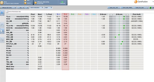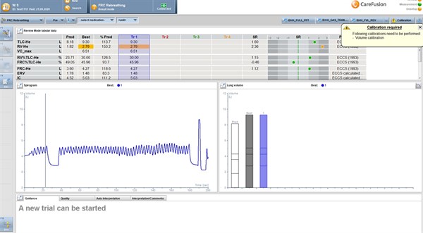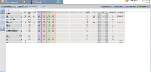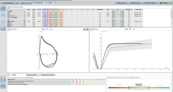 - Lung volumes graphs and results (2 separate snippets/screen shots/pictures or more if using bodybox so can see manoeuvres)